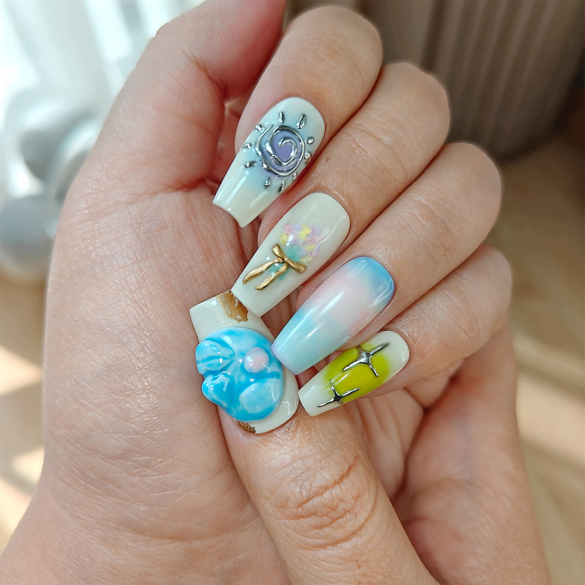 - Keep in mind that the colors you see on your screen may differ slightly from the physical nails due to variations in device displays.